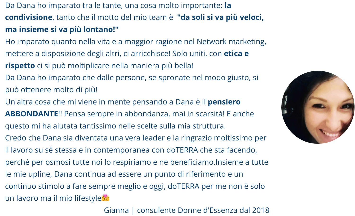 Più aiuti gli altri a ottenere risultati con i loro oli essenziali e a realizzare i loro sogni, più aumenterà il tuo reddito. Cambiando la vita degli altri, vedrai la tua cambiare di conseguenza. Ci piacerebbe far parte del tuo successo!